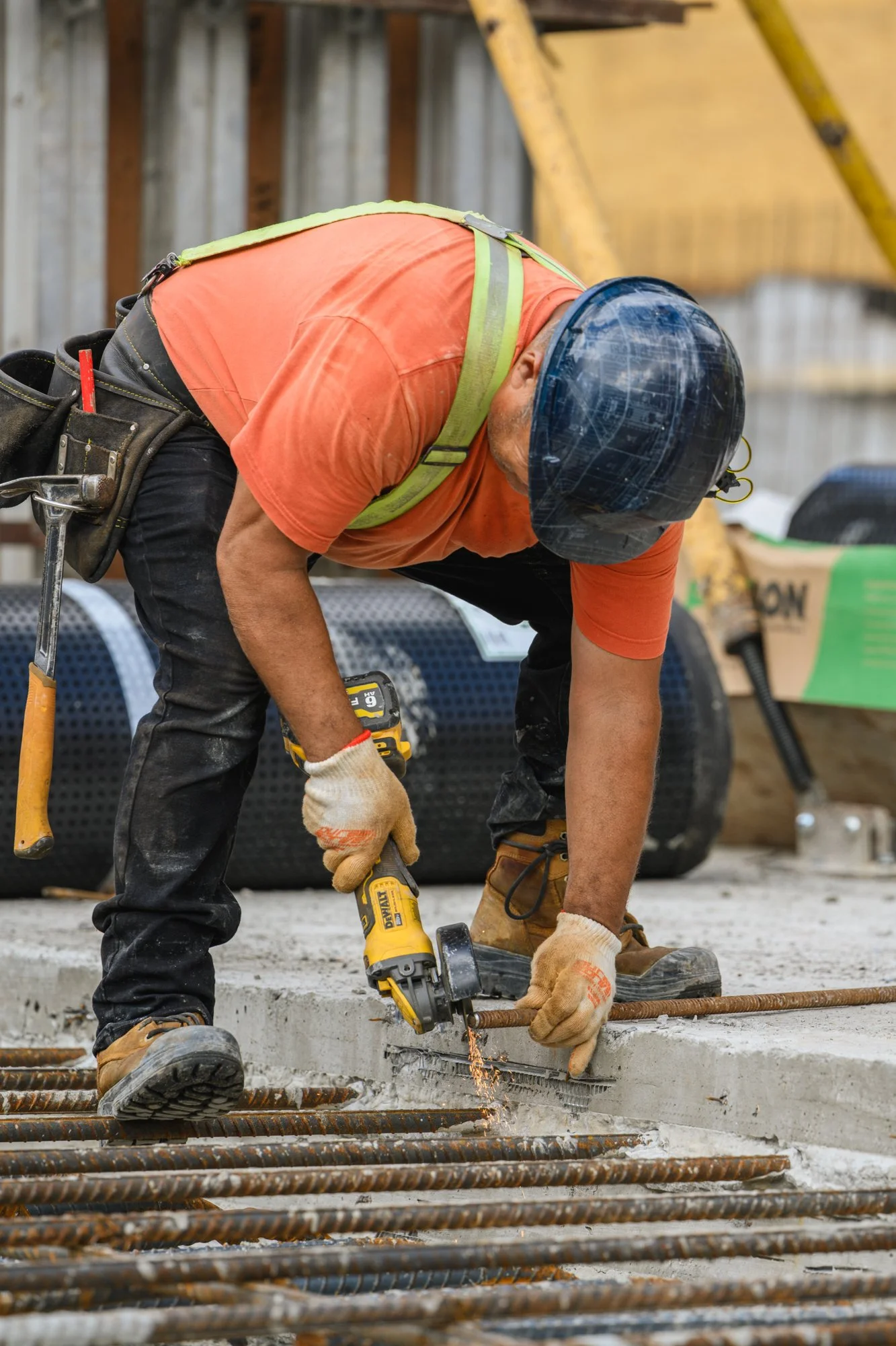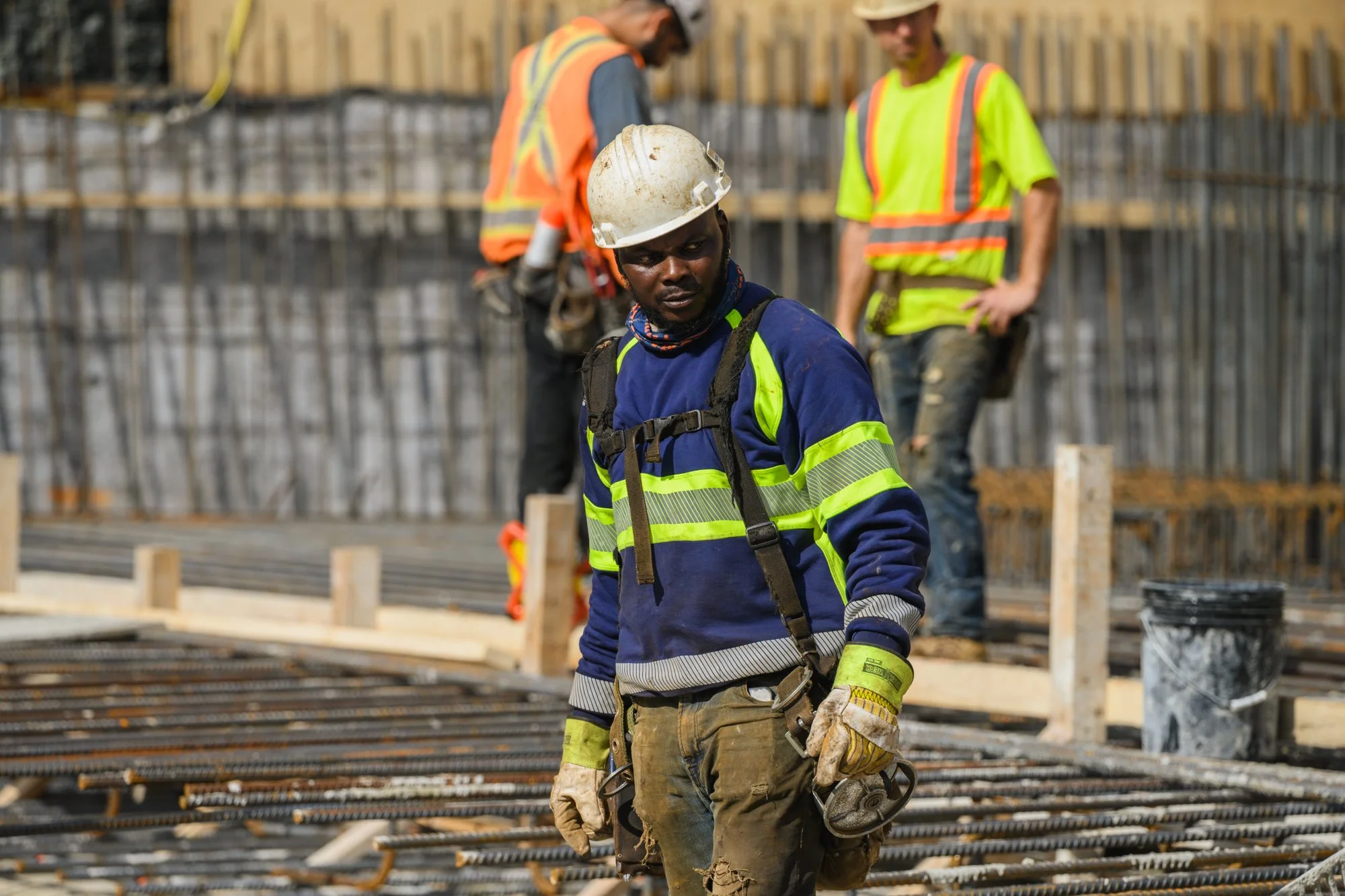 Construction light changes every minute. I watch the sun, use short cloud windows for faces, and keep verticals straight so the structure reads correctly. Fast shutter speeds freeze the concrete texture and boom motion. Color is balanced for skin first, then tuned so high-vis stays strong - not radioactive.
