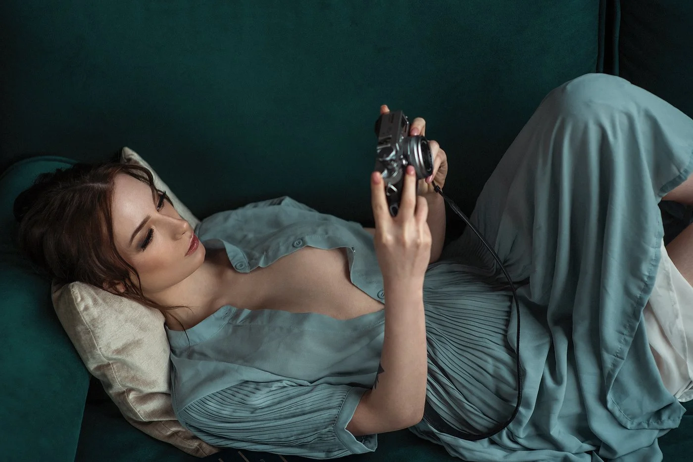 Boudoir is not automatically ultra-revealing or overly sexual. It can be soft, elegant, romantic, moody, playful, quiet, cozy, or bold. It can be lingerie, but it can also be an oversized shirt, a robe, a sweater, a bodysuit, jeans, or a simple white sheet.