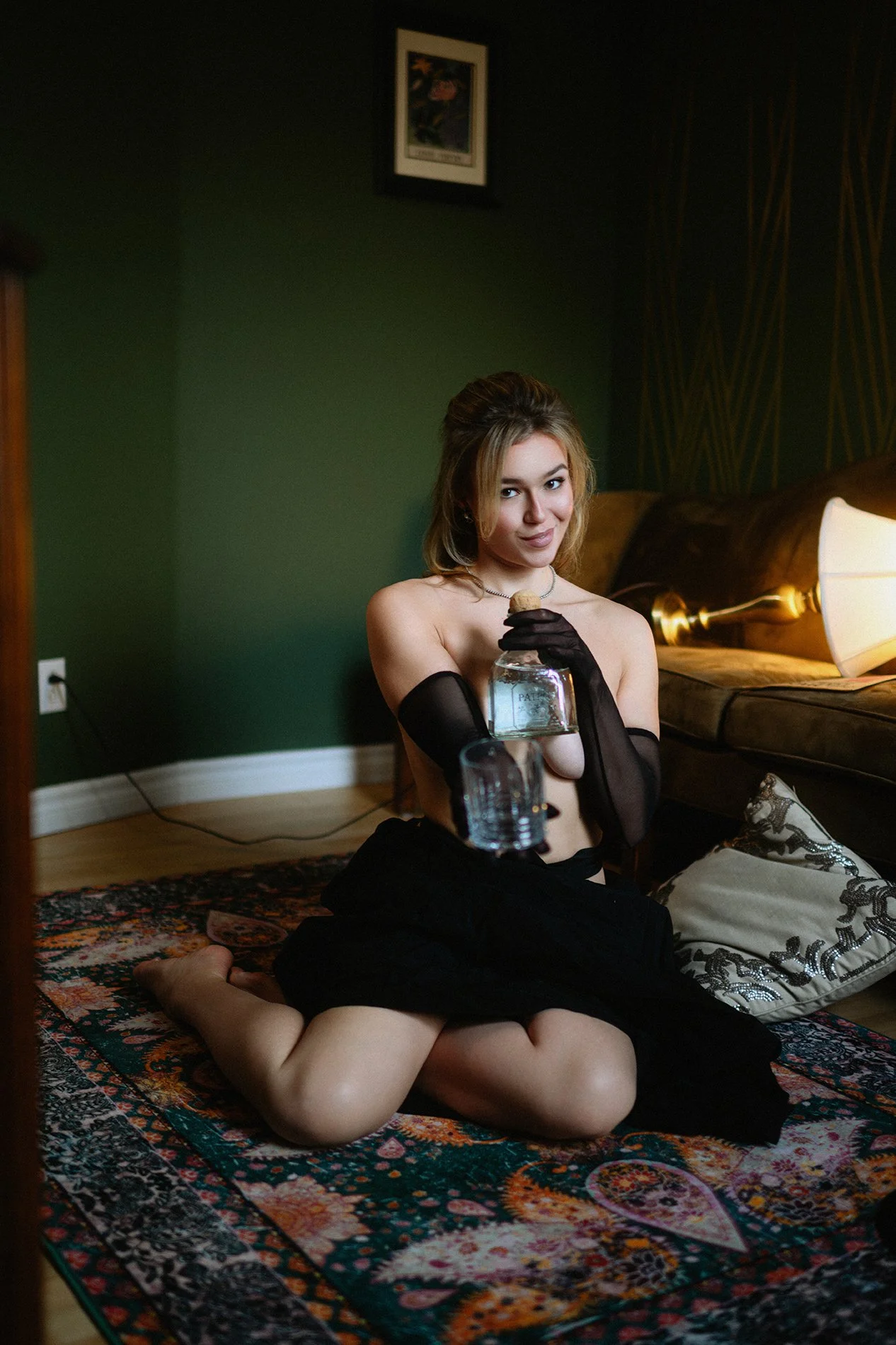 We started in the living room, near the mirror and on the sofa. I love beginning this way because it’s low pressure and it helps a model warm up naturally.